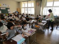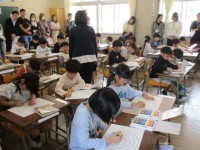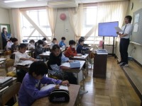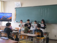 1組は、読み方を工夫しながらの音読発表をしています。2組は、2年生で習った漢字を...