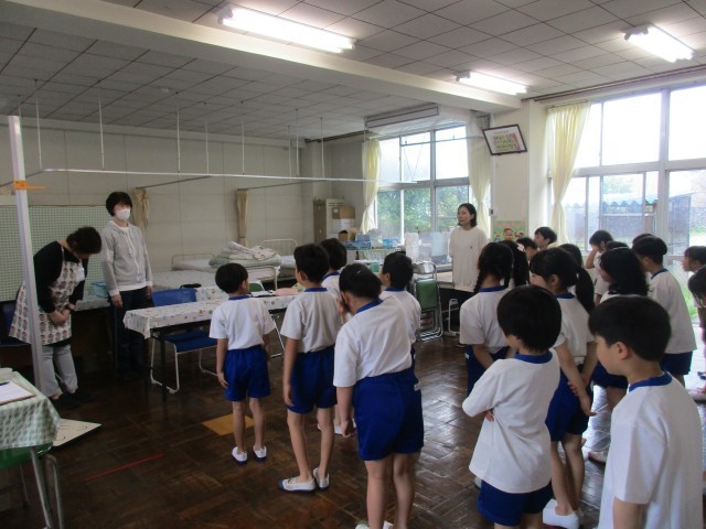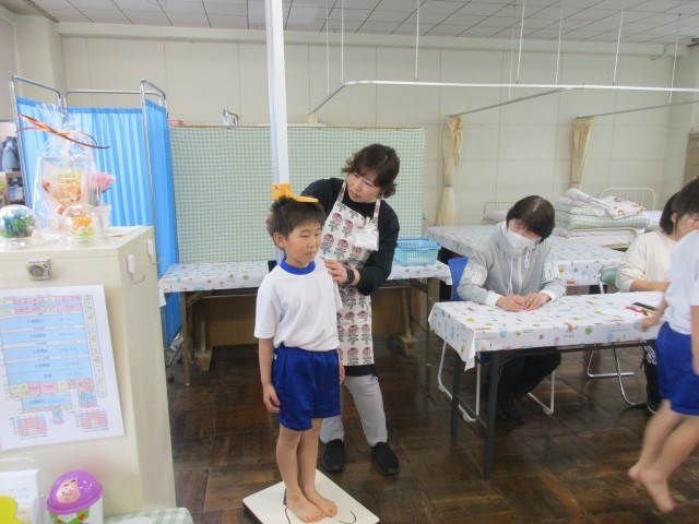 2年生は身体測定です。どのくらい大きくなったのか、ドキドキしています。