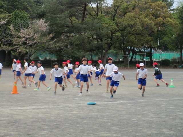 4年生は、外でドッジビーを行っていました。