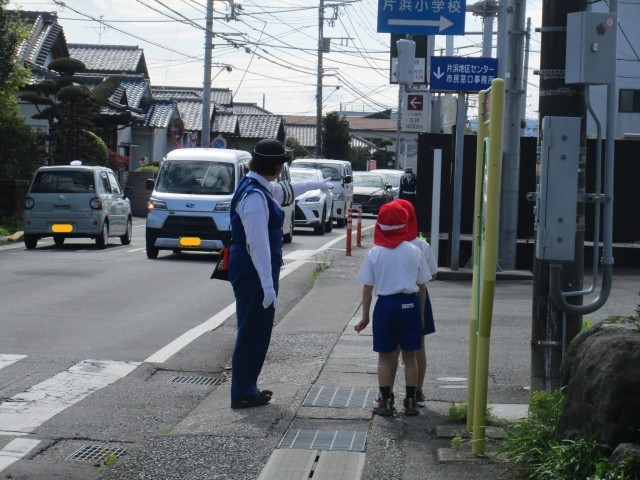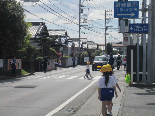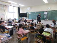 4月16日(金)2年生 交通安全教室 公開日 2026/04/16 更新日 2026/04/16 2年生 交通指導員さんやPTAの方に見守っていただきながら、交通安全教室を行いました。2人ずつペアになって、車や自転車を確認しながら歩道を歩きました。