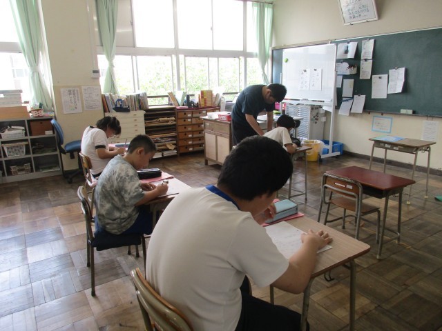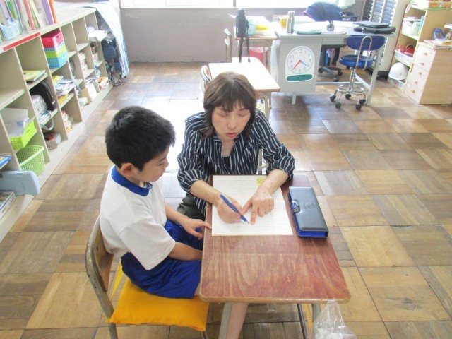 2組は、それぞれ異なるプリントを使って漢字の学習を進めています。