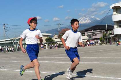 最後は6年生の男子です。スタートラインでは、新記録を出そうと気合い十分の表情が見られました。