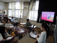 一学期の学習内容をプリントで確認。みんな一生懸命取り組んでいました。