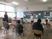 交流会に出かけました。学校の様子を別の学校の皆さんに紹介します。