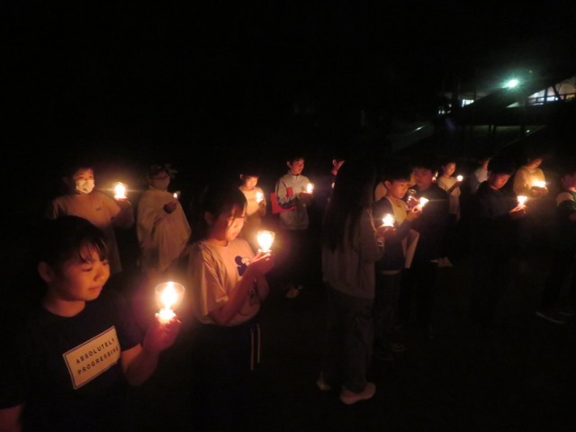 夜のキャンプファイヤーでは、思い切り歌い踊り、楽しい時間を過ごしました。