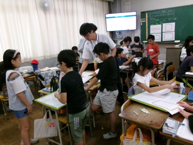 4年部では、算数の「面積」の学習を研修し、公開していました。