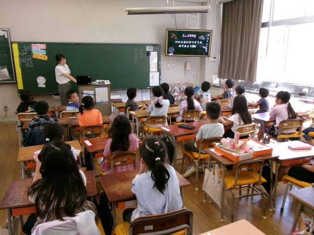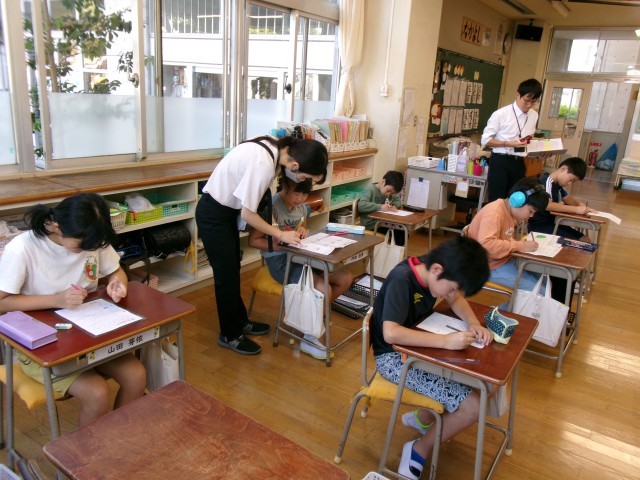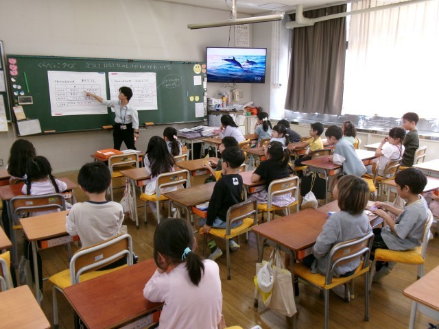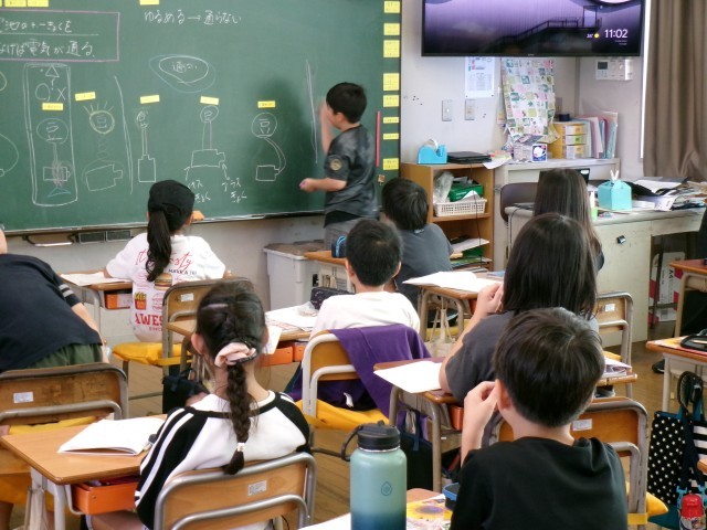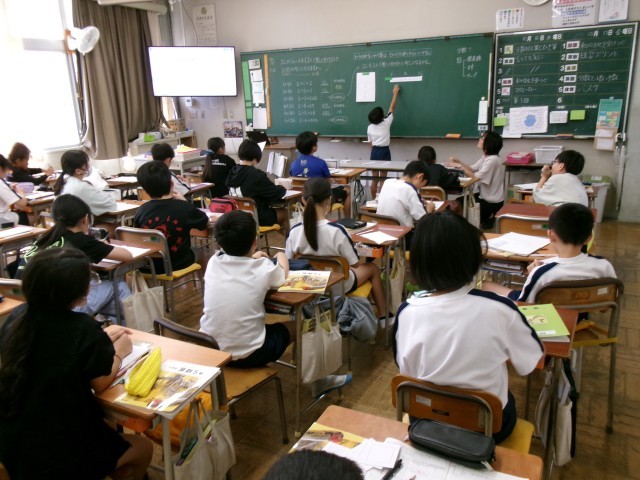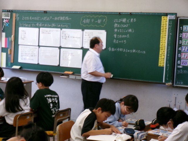 5年1組の理科を全職員で参観し、放課後に研修会を開きました。本校では、子供たちの「夢中になる姿」を大切にする授業を目指しています。
