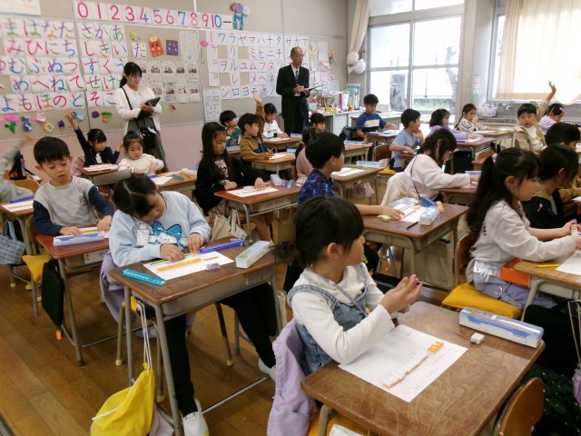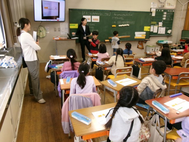 1年生は、算数のたし算で、前回の授業の計算方法を活用して、計算する方法を考えていました。