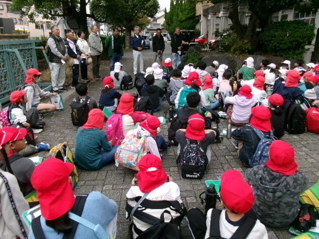 また、学校を出発してから帰ってくるまで、江原素六顕彰会の方々に付き添っていただきました。公園では、お弁当をおいしくいただきました。