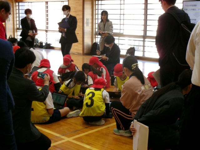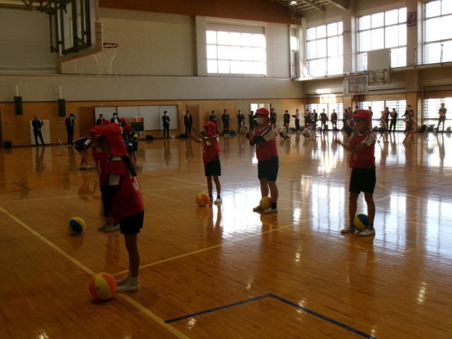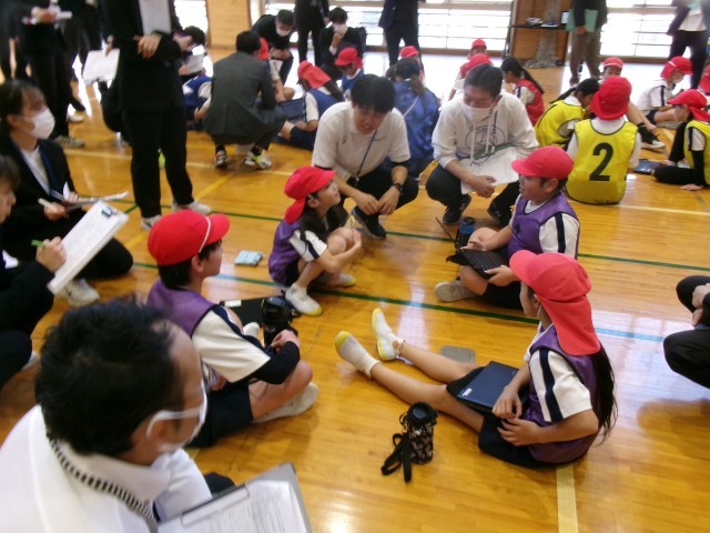 「目指せ!全員活躍バスケットボール」という体育の授業公開です。子供たち全員が力一杯コートの中を走り回り、汗びっしょりになっていました。次回からのリーグ前に向けて作戦を練り、自分たちの動きを確認し合う姿が印象的でした。