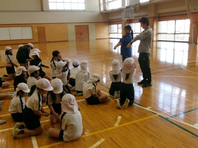 3年生にも、金岡中学校の2年生が職業体験に来ています。バレーボール部に所属しているとのことで、体育の授業ではお手本を見せ、一緒に活動してくれました。頼もしいサポートでした。