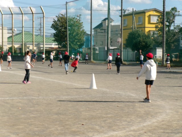 今日は天気が良く、5時間目の体育は外で気持ちよく運動している6年生の姿が見られました。