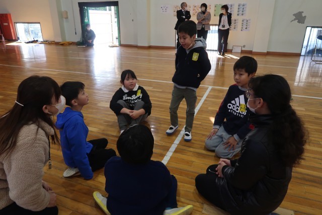 金岡小・第五小・開北小・門池小の4校の特別支援学級の児童が集まりました。一緒にゲームをしたり、歌を歌ったりして交流を深めていました。