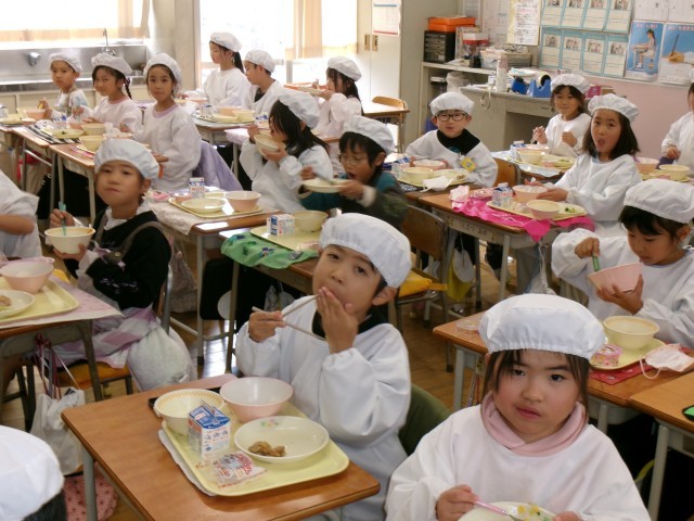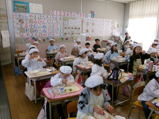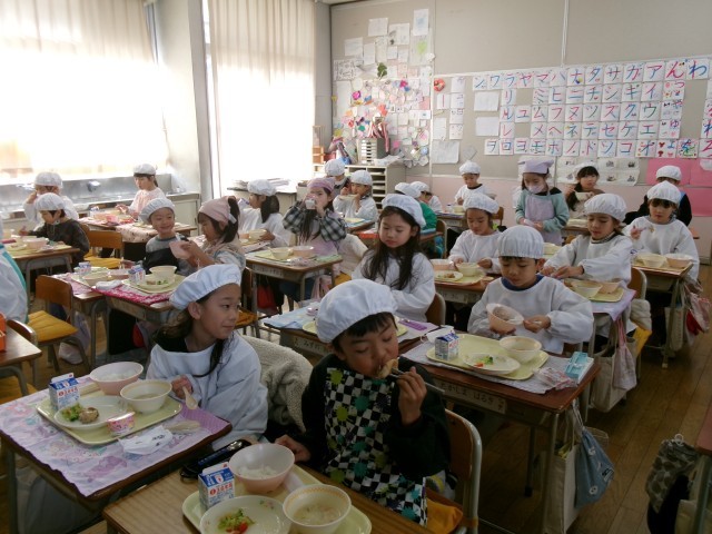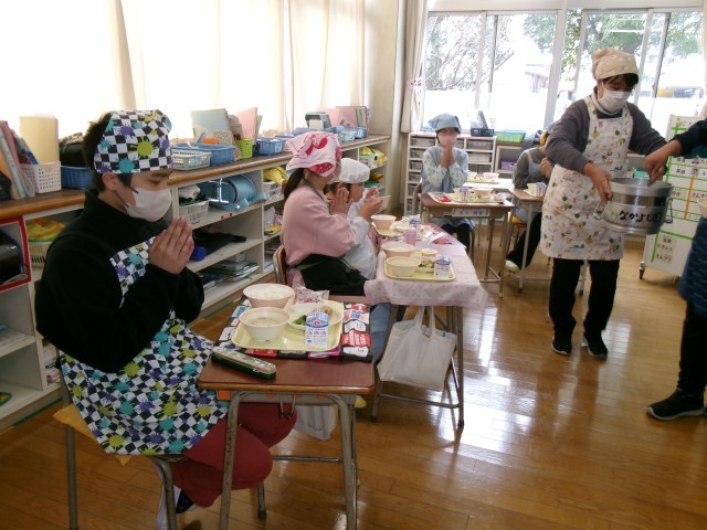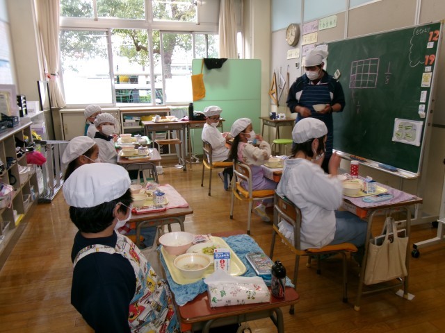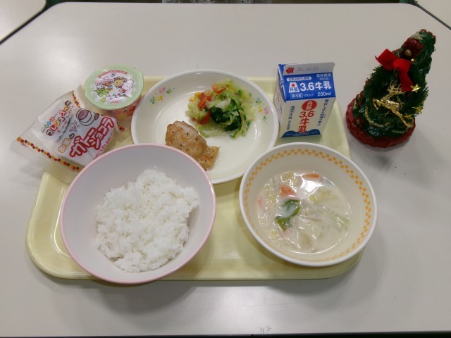 2学期最後の給食は、クリスマスをイメージしたメニューです。中でも、デザートは2種類から選んでいます。