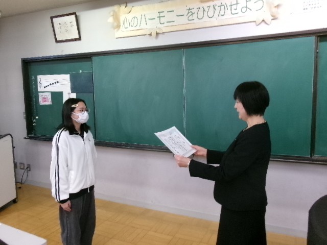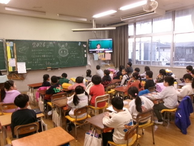 1/7(水)表彰・始業式 公開日 2026/01/07 更新日 2026/01/07 R7年トピックス 始業式の前に、席書コンクールの表彰を行いました。多くの子供たちが出品された中で、県のコンクールに出品された人もいました。6年生の二人に、代表として賞状を受け取ってもらいました。引き続き、始業式を行いました。2年生の代表が、3学期に頑張りたいことを発表しました。とても上手に話すことができました。全校の子供たちの話を聞く姿が素晴らしかったです。 +7 いいね(0)