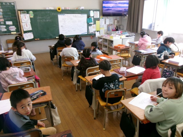読解の授業では、「2年生カルタ」をつくっていました。2年生の思い出がいっぱいでした。