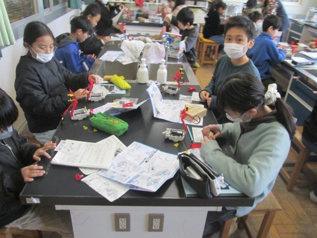 算数では、割合の学習を進める中で、どの数を「1」として基準にするかをみんなで考えながら、計算方法について話し合い、理解を深めていました。家庭科では、これまで学んだ縫い方や型紙の使い方を活かして、ミシンを使ってエプロン作りを行いました。友達と協力して、ミシンの使い方を確認しながら、生地を縫い合わせていく作業に取り組んでいました。理科の授業では、電気が流れると磁石のような性質を持つ「電磁石」について学び、その仕組みや実際の使用方法を理解しました。実験を通して、電気が磁力を発生させる様子を観察していました。英語では、「What would you...?」を使って自分の意見や考えを表現する方法を学びました。友達と意欲的に英語でコミュニケーションを楽しんでいました。