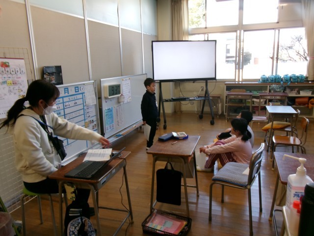 また、学習発表会に向けて、リハーサルをしているクラスもありました。きちんと時間を計り、顔の向きなども考えてお話ししていました。