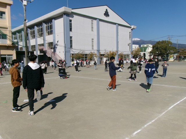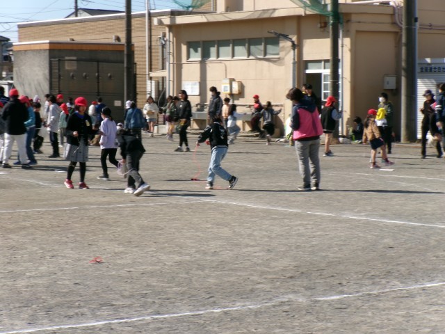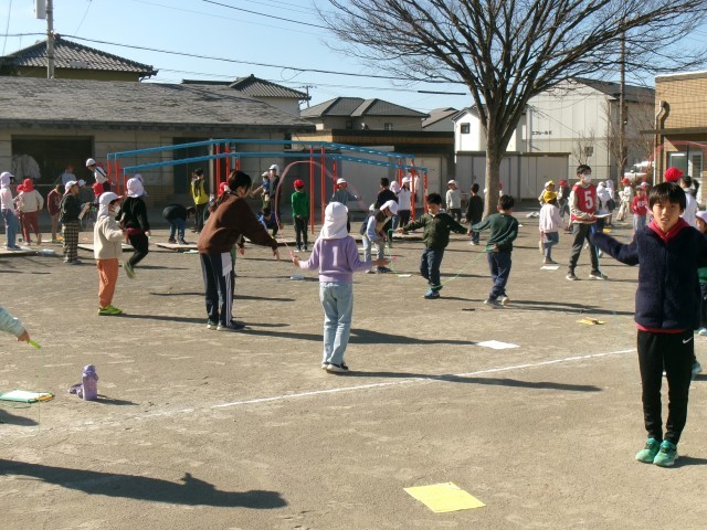 外では、なわとび運動に一生懸命取り組む子供たち。先生たちも数を数えたり、跳び方をレクチャーしたり大忙しです。