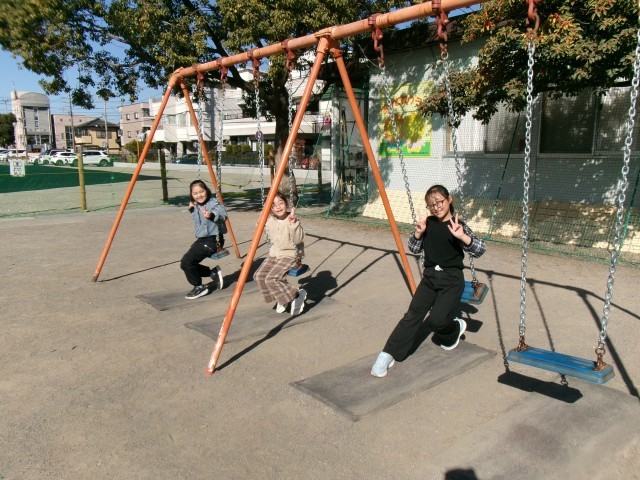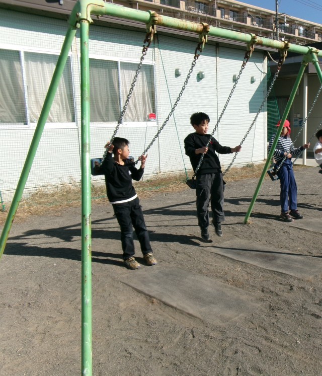 ブランコに乗り、笑顔いっぱいの子供たちもいました。「気持ちいい~。」とうれしそうな声。