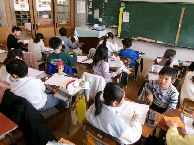 読解の時間に、思い出カルタをつくっていました。昨年度の2年生がつくったカルタを参考に、今年バージョンのカルタをどんな風につくろうか考えていました。