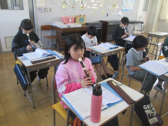 1組は鉄腕アトムの曲をリコーダー演奏の練習、2組は算数の見取り図、3組は水の沸騰についての学習をしました。どのクラスも、自分の課題にしっかりと向き合う姿が見られ、高学年に向けた成長を感じさせます。