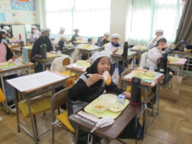子どもたちが心待ちにしていた「揚げパン」が給食に出ました。 調理員さんが一つひとつ丁寧に揚げたパンは、外はサクッと、中は驚くほどしっとり。「みんなだいすき!」という言葉通り、どのクラスでもおかわりを待つ列ができるほどの大盛況でした。毎日、給食をおいしくいただいています。