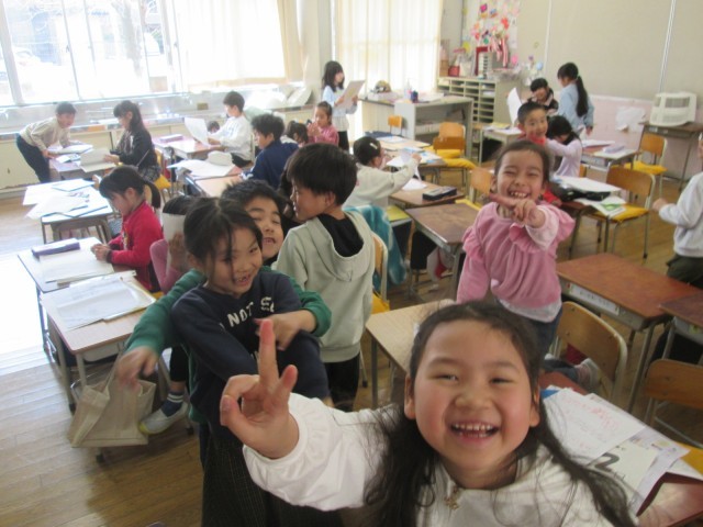 各教室では、担任の先生から一人ひとりに通知表が手渡されました。その後は、ククラス最後の思い出作りに全力投球。どの教室を覗いても、子供たちのキラキラした元気な姿があふれていました。