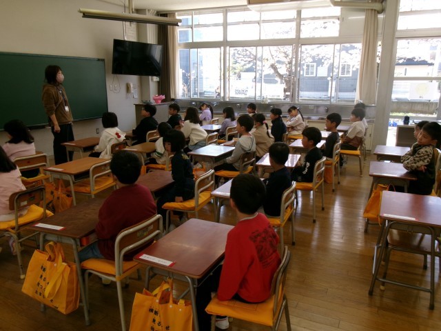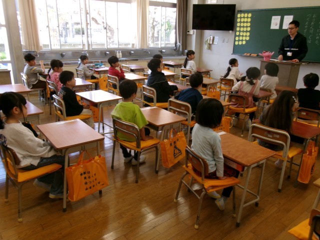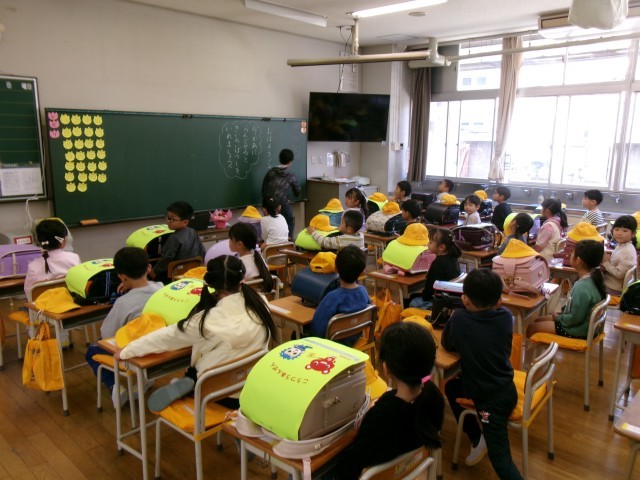 緊張した雰囲気ももちろんありますが、となりの友達とお話ししたり、担任の顔を見てしっかり話を聞いていたりする姿も見られました。