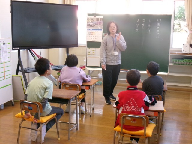 仲よし4組は、担任の話を聞いて、朝の会の進め方を学んでいました。
