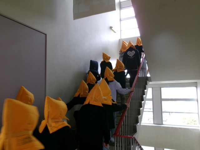 1年生は初めて校舎の3階まで移動することになりましたが、真剣に訓練に参加できました。