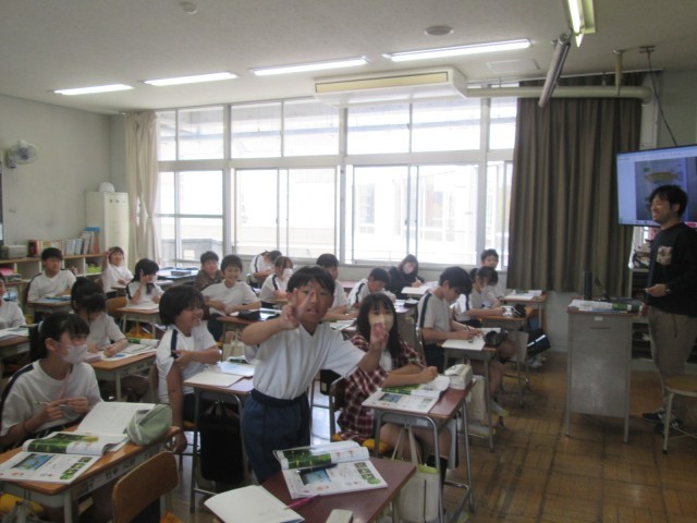 3組の理科では、メダカのオスとメスの体のつくりや動きをインターネットを使いながらじっくり観察して学んでいました。
