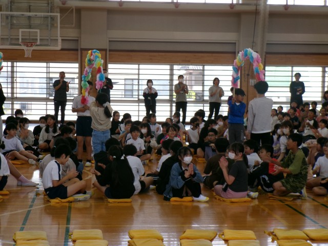 1年生を迎える会を行いました。全校で協力し、1年生に学校の楽しさを知ってもらいたいという上級生の思いがこもった素敵な会でした。