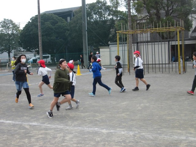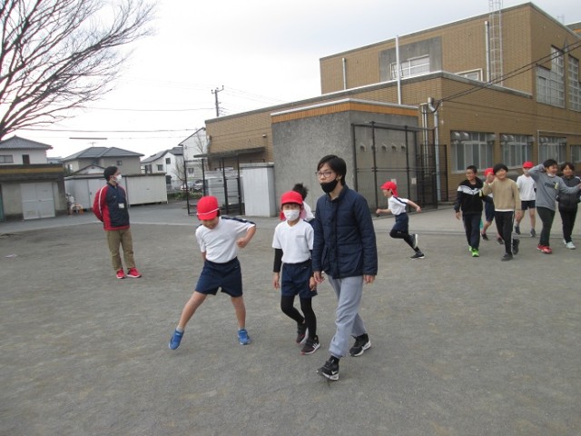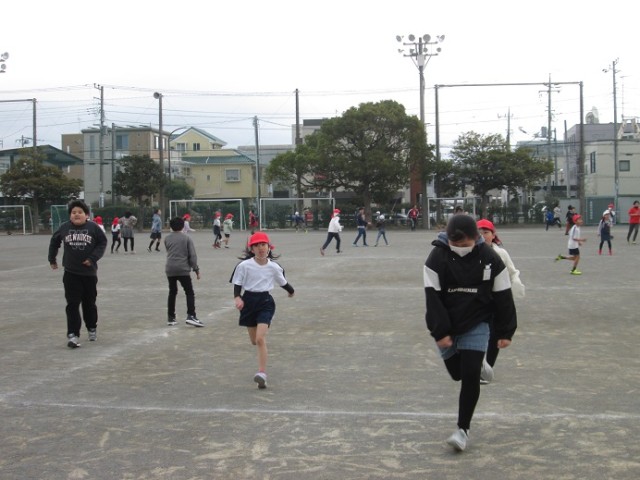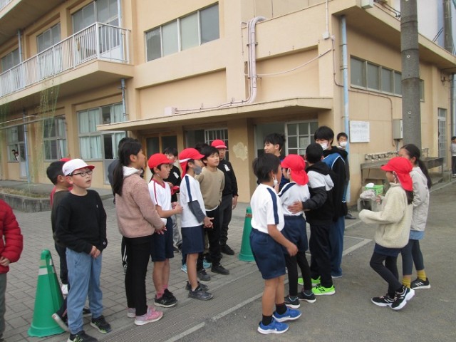 今日は3,5年のペア活動「逃走中」が昼休みに行われました。ペアで、赤いビブスを着たハンター(6年生や先生)から逃げます。とらわれた子達は、待機場所で待ちます。途中、ハンターは追いかけることができない時間ができ、その間に指令が出ます。指令を解くととらわれた子を解放できるカードをもらえます。そのカードをもらって逃げようとした頃、残念ながら雨が降ってきたため途中で終わりとなってしまいました。残念そうでしたが、とっても楽しいペア活動でした。