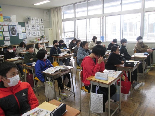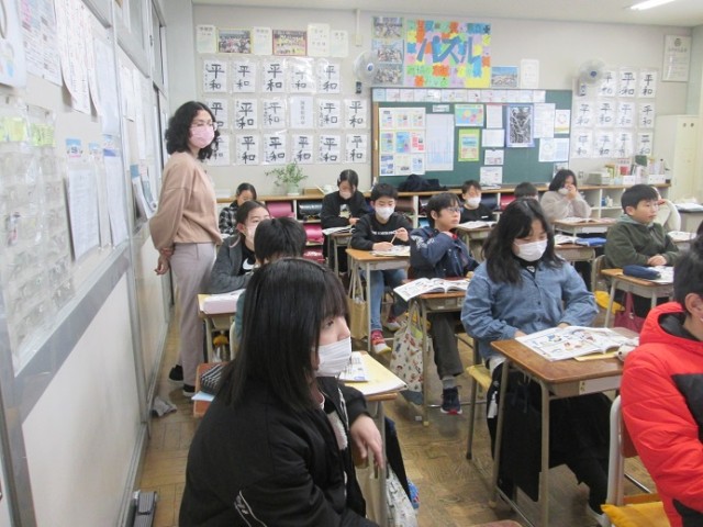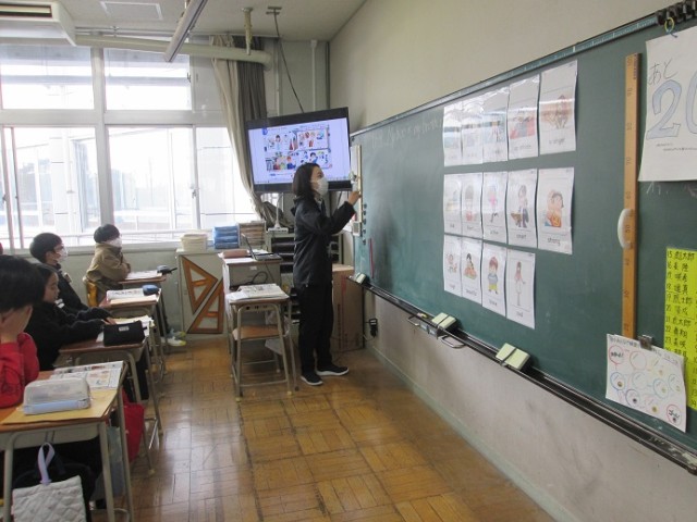 5年3組は英語「My hero is my brother.」の学習です。自分の憧れの人を英語で紹介するのが目標だと確認しました。この後、ミッションゲームをして楽しみながら英単語を覚えていきました。