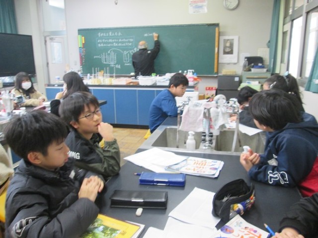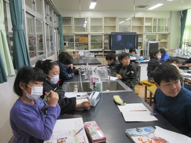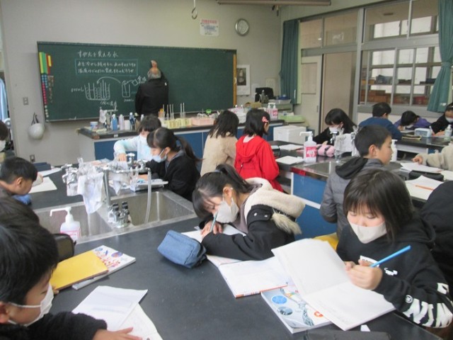 4年4組は理科「すがたを変える水」の学習です。「水を冷やし続けるとどうなるのか?」という実験を行います。氷水に食塩水を入れて温度を計測していきます。この実験からどんなことが分かったかな?