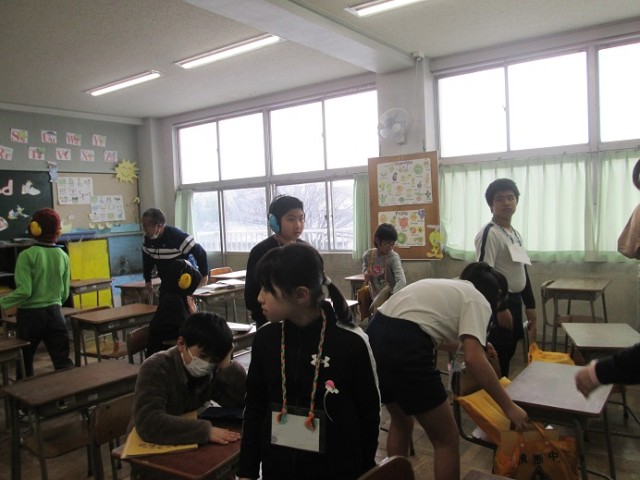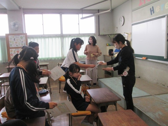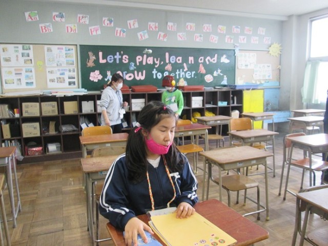 なかよし2,3組は英語「Where is the~?」の学習です。場所を教える「Go straight.」「Turn left/right.」などの言い回しを使って会話を練習しました。終わるところだったのでもう少し様子を見たかったです。
