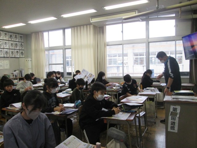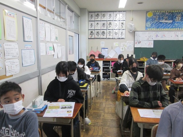 6年2組は社会科のテスト返却です。先生からテスト内容の解説です。小学校でのテストもあと何回でしょうか。最後まで力を発揮してくださいね。