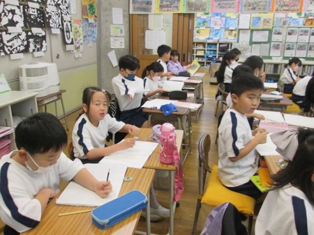 2年1組は国語「お手紙」の学習です。「このお話には「 」がたくさん出てきます。だれが言っているのか気をつけながら聞いてくださいね」と先生。また、「物語の時には何をお勉強するんだっけ?」と問われると「感想を書きます!」と元気に答えていました。どんな感想をもちましたか?