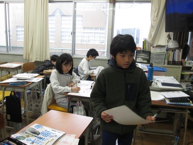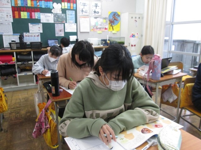 5年4組は、理科「人のたんじょう」の新聞作りです。受精や胎盤、羊水などの用語や挿絵を入れながら新聞を作っています。大切な自分の命や周りの人たちの命の大切さを考える学習ですね。