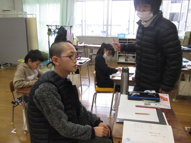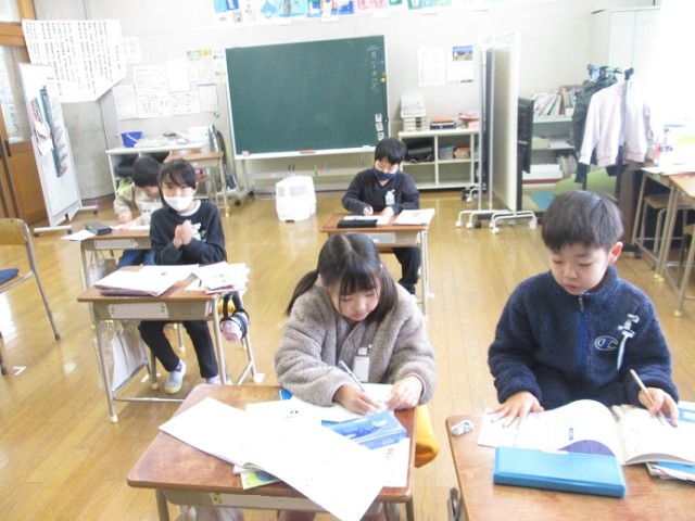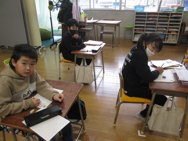 なかよし4組は、国語です。ドリルや漢字プリントなど、各学年の進度に応じて進めています。習った漢字を思い出しながら、一生懸命考えている姿が印象的でした。