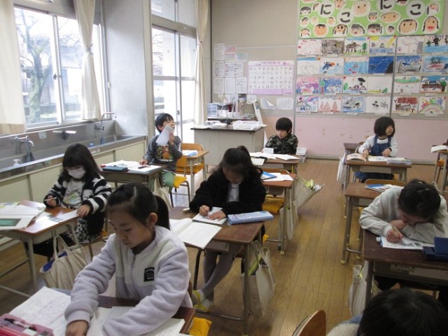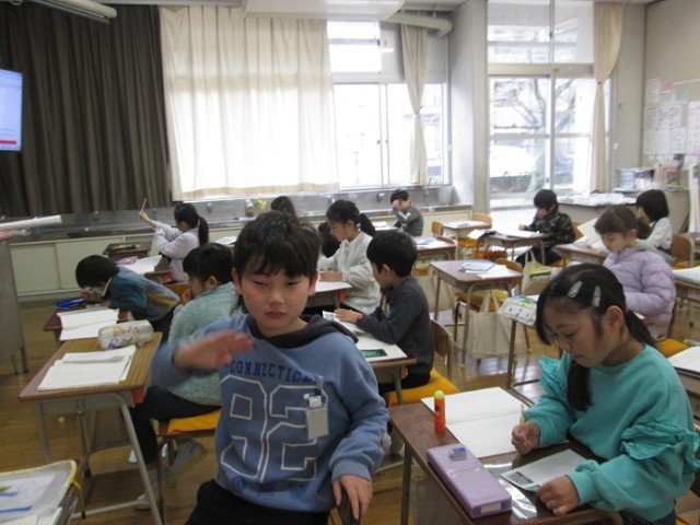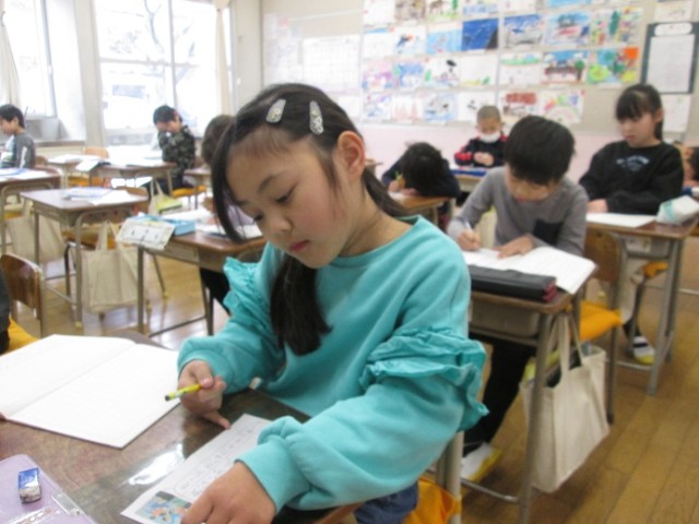 1年2組は「ろくべえ まってろよ」のせりふや行動から登場人物の気持ちを考えているところでした。どんなせりふからそう思ったのか、言えるようになるといいですね。