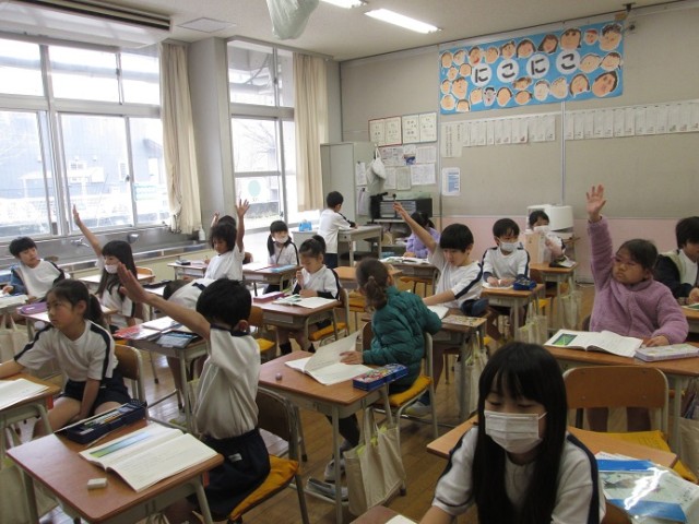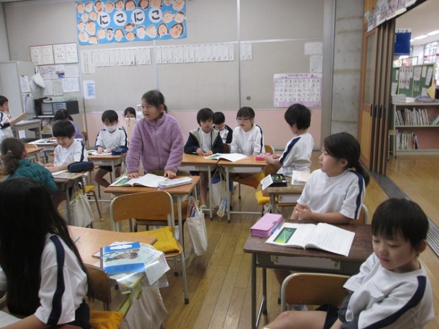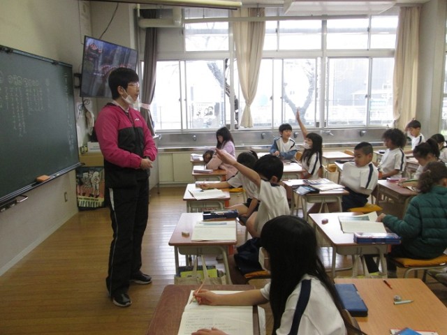 1年4組は、「ろくべえ まってろよ」の文章中に出てくる「 」の言葉は誰が言っているのかを確認しました。「家で本読みをするときも誰が言っているのか意識しながら練習してくださね」と先生からお話がありました。