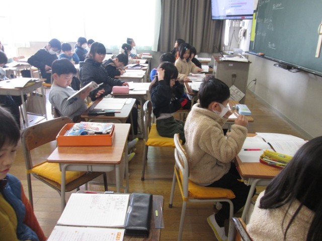 2年2組は算数「たし算とひき算」のh学習です。テープ図を活用しながらどこが分かっている数字なのか、どこが分からない数字なのかを整理しながら考えていました。