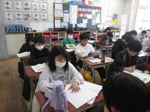 5年4組は国語「大造じいさんとがん」の学習です。「この場面のタイトルを考えている人いる?」と先生。すぐさま何人かの手が挙がりました。4組では、場面ごとにタイトルを考えていきます。