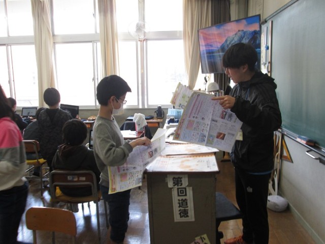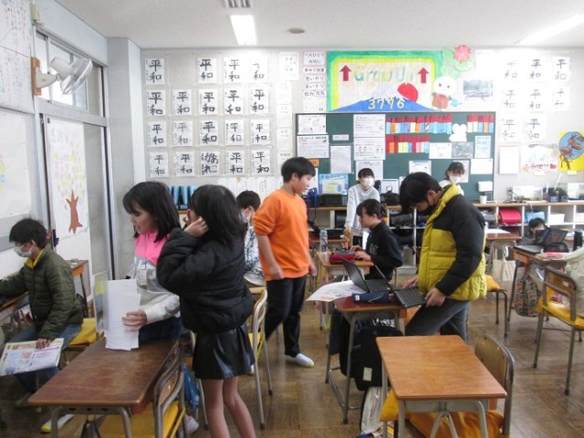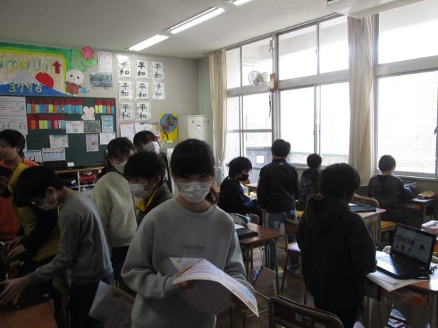 5年4組は、社会科「日本の工業生産」、「自然条件と人々の暮らし」のテストです。2枚だったので、提出するときにはフーッと息をつく子もいました。それだけ集中していたのだと思います。頑張りましたね。