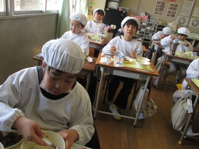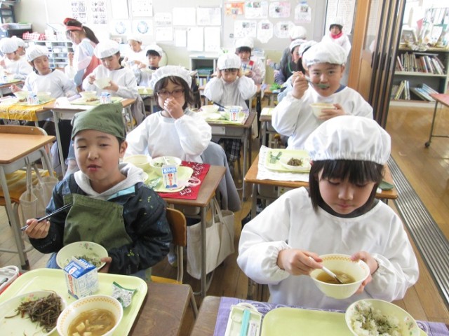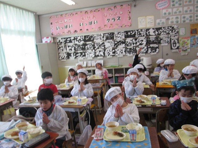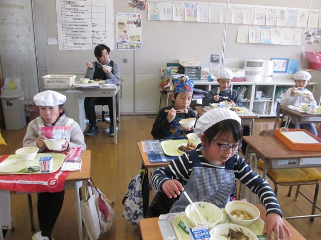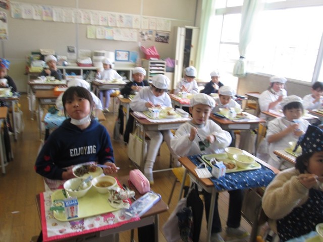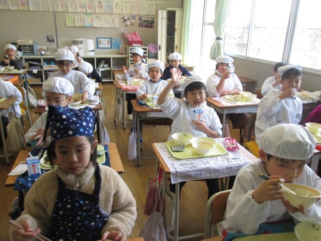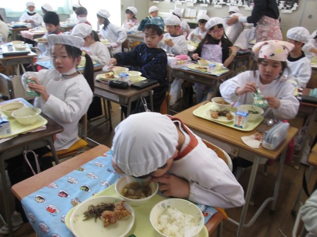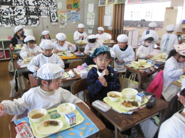 2年生も食欲旺盛!たくさん食べられるようになりました。からあげは2年生も大好きだそうです。