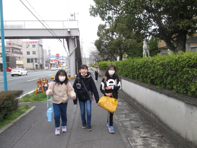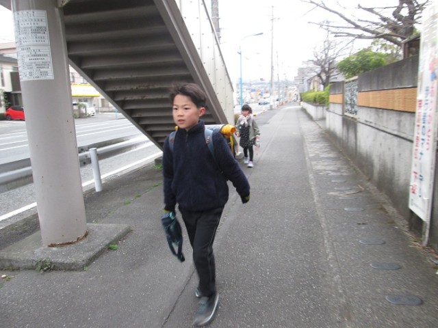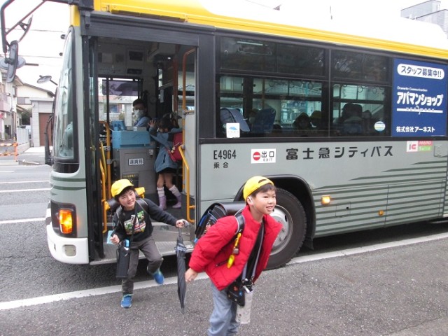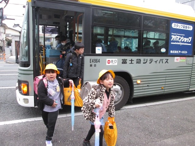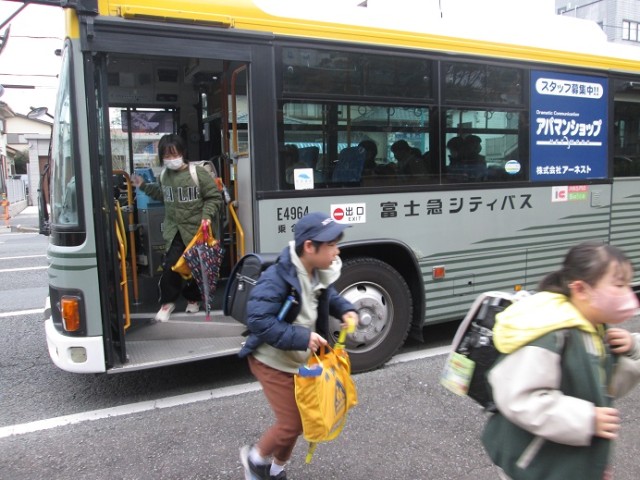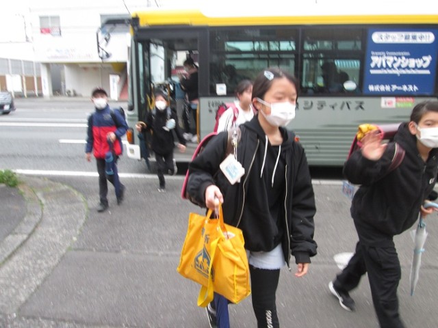 バス通学の子供たちは飛び降りるようにバスを降り、玄関を目指していきます。卒業式まではあと10日間となりました。