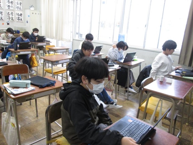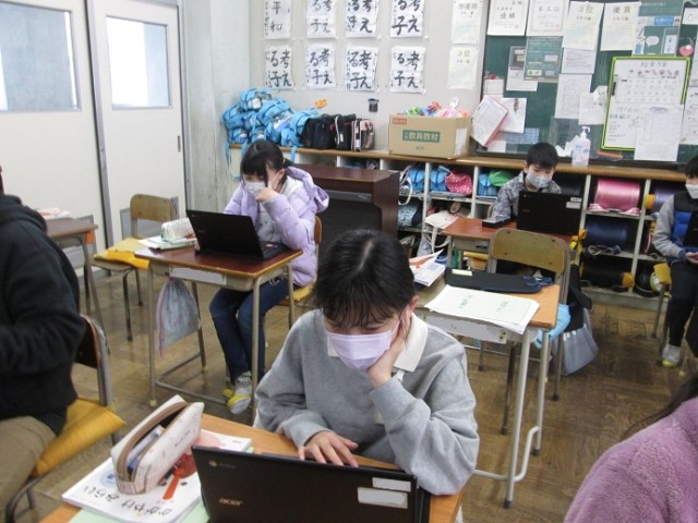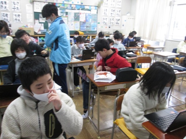 5年2組は、道徳で「ネットモラル」について学んでいました。動画を見ながらどんな危険なことがあるのか、どう対処しなければならないのかを考えていました。