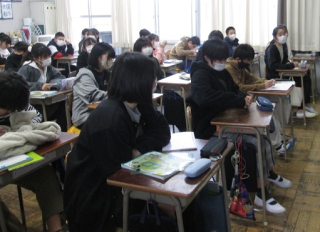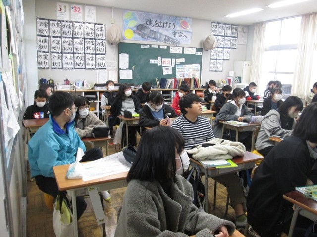 6年3組は、卒業式の呼びかけについての確認を行っていました。聞き手を意識した間の取り方などについても確認しています。